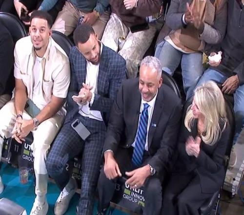 戴尔-库里的两个儿子:斯蒂芬-库里和塞斯-库里均到场支持。