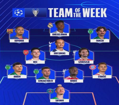 官方:赖斯入选了欧冠八分之一决赛次回合最佳阵容。