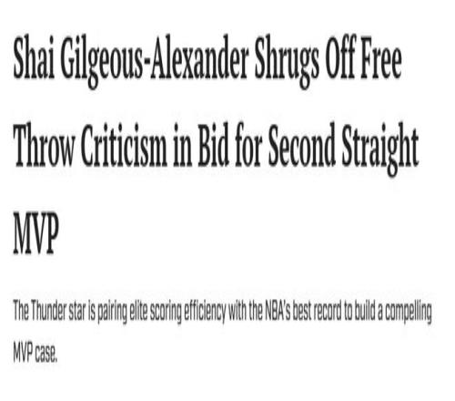 北京时间3月21日,亚历山大在最近一次采访中明确表态自己想拿MVP,还回应了球迷关于自己罚球的争议。