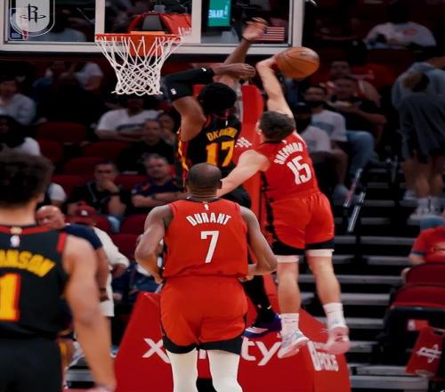 都说谢泼德单防能力差,老鹰每个人都逮着他打,但他协防的能力强啊,他甚至大帽了奥孔古的暴扣,谢泼德是有最大弹跳42英寸的球员,首节小谢3分3篮板2助攻1抢断1盖帽已经填满数据栏。