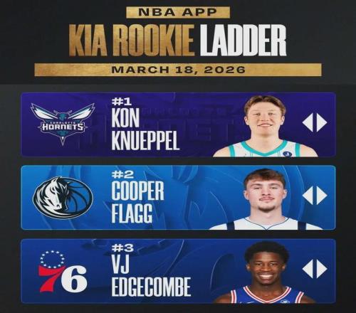 雷诺把马刺榜眼迪伦-哈珀挤到第五,新秀榜前三雷打不动:克尼佩尔、弗拉格和埃奇库姆。弗拉格、哈珀、埃奇库姆和克尼佩尔,正是2025年NBA选秀的前四顺位,证明选他们的球队没有看走眼。雷诺只是42顺位,国王队捡到宝了。