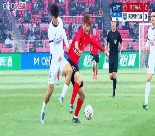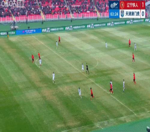 第23分钟,辽宁铁人终于打破僵局,姆本扎接到队友传中后两连击破门,这是辽宁铁人队史中超首球。