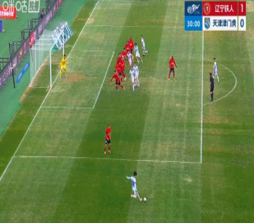第16分钟,辽宁铁人利用定位球制造威胁,费利佩抢点头槌,津门虎门将齐雨熙神勇救险。