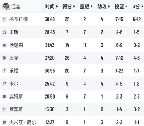 反观乐福,22中7,三分7中1,投篮这么铁还疯狂出手,20分7板3助4失误3犯规,正负值负14。乐福在开拓者是双向合同,这就是他没能转正的原因,依靠大量的出手来堆积数据,给杨瀚森这么多球权,有望30+。