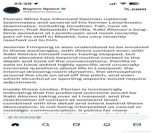 与此同时,Jeremie Frimpong 也被认为参与了相关沟通。事实上,他与阿隆索之间的直接联系从未中断。但真正让此事超出“常规交流”范畴的,是对话的深度与指向性。据悉,帕里利亚提出了大量具体且细致的问题,内容涵盖利物浦的生活环境、更衣室内部氛围、俱乐部在场内外的整体运作,甚至细化到哪些结构性或竞技层面需要调整。