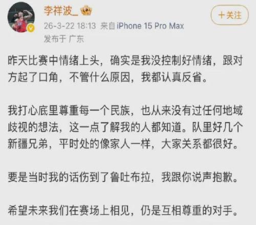 CBA官方宣布:李祥波停赛4场+罚款10万,鲁吐布拉停赛1场+罚款5万。