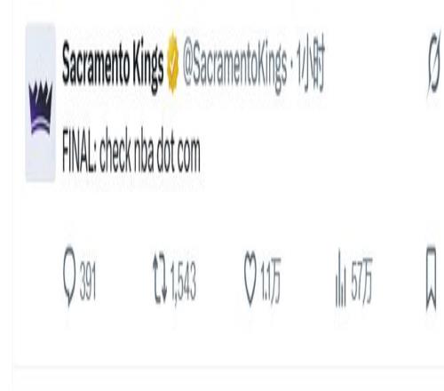 赛后国王官推连比分都不发了,就留了句“你们自己去查吧。”