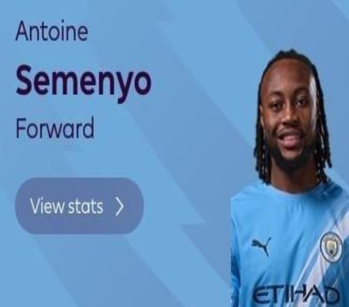 塞门约曼城英超首秀后已参与5球,同期仅次于帕尔默和佩德罗