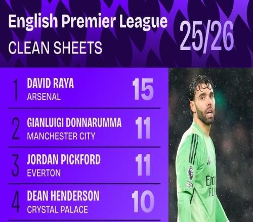 本赛季英超零封榜:拉亚15次第1,多纳鲁马、皮克福德11次第2