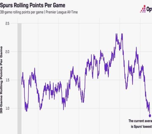 在英超第29轮主场1-3输给水晶宫后,热刺近38场联赛场均仅0.87分,据统计,这是热刺队史联赛任何一段38场比赛中最...