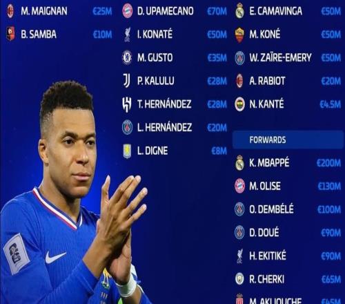 新一期法国队身价榜:姆巴佩、奥利塞前2,26人总身价14.3亿
