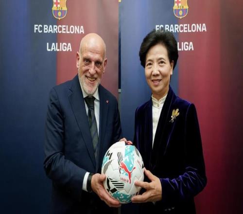2月4日,巴塞罗那足球俱乐部与西甲联赛共同欢迎由中华人民共和国国务委员谌贻琴率领的中国代表团访问巴萨拉...