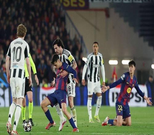 北京时间3月19日,欧冠八分之一决赛次回合,巴塞罗那主场迎战纽卡斯尔,首回合两队战成1-1平。比赛中。图源:视觉中...