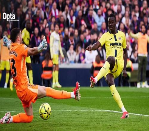 西甲第26轮,巴塞罗那主场对阵比利亚雷亚尔,下半场帕普-盖伊破门为黄潜扳回一城,这是巴萨本赛季西甲主场下半场...