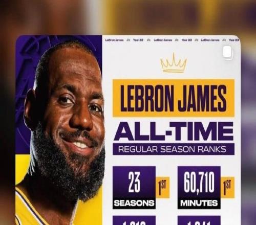 NBA历史最长河流!詹姆斯独享常规赛出场纪录