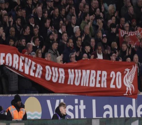 纪念若塔,狼队、红军球迷在比赛第18分钟和第20分钟发出呼声