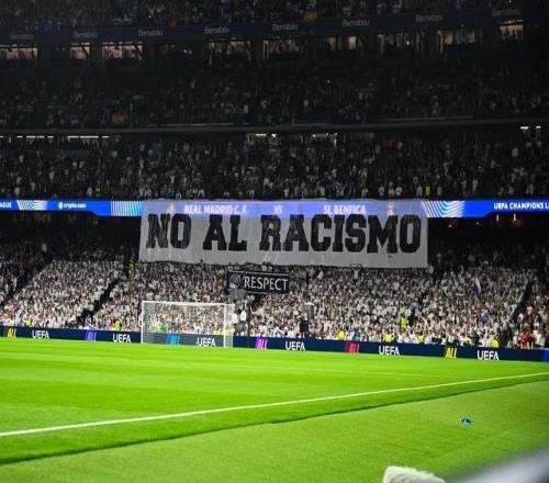 主场对阵本菲卡赛前,伯纳乌看台上展示反种族主义横幅