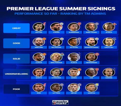 德转评英超夏窗引援夯到拉:埃基蒂克、谢尔基最佳,伊萨克最差