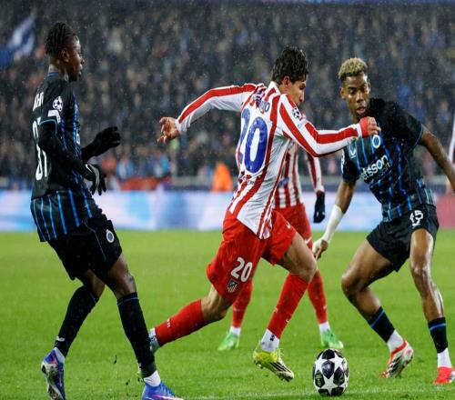 马竞总分74布鲁日晋级欧冠16强,瑟洛特戴帽,卡多佐破门