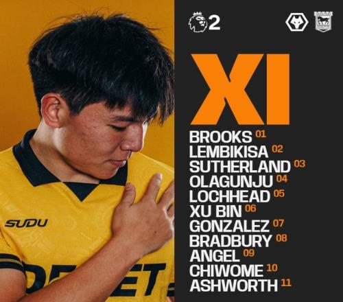 2030留洋首秀,狼队U21vs伊普斯维奇U21,徐彬或首发登场