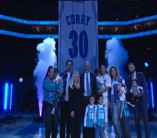 恭喜!黄蜂退役戴尔库里30号球衣库里全家到场见证父亲荣耀