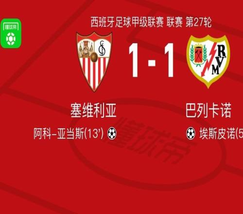 塞维利亚11巴列卡诺,阿科亚当斯破门,埃斯皮诺救主